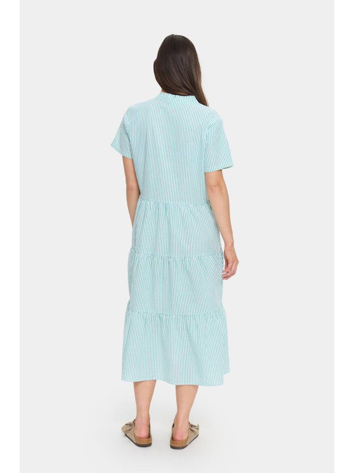 Платье миди свободного кроя с короткими рукавами и многоуровневым кроем. V-образный вырез обеспечивает максимальный комфорт. Универсальное и удобное для повседневной носки.