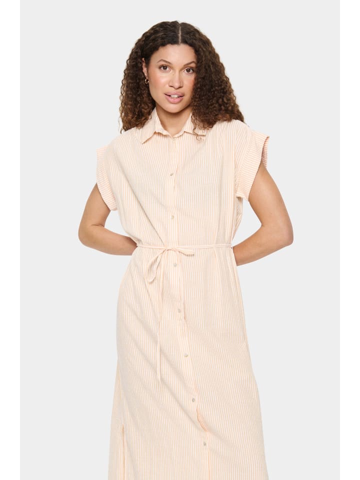 Это женское платье-рубашка впечатляет свободным кроем и классической застежкой на пуговицы. Отложной воротник, короткие рукава и пояс на талии делают его идеальным выбором для любого случая.