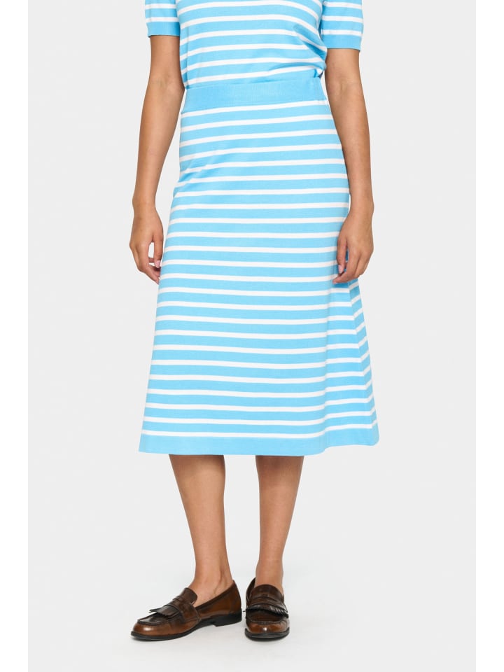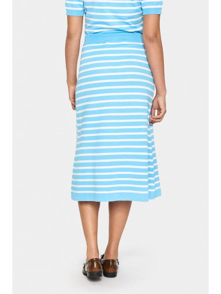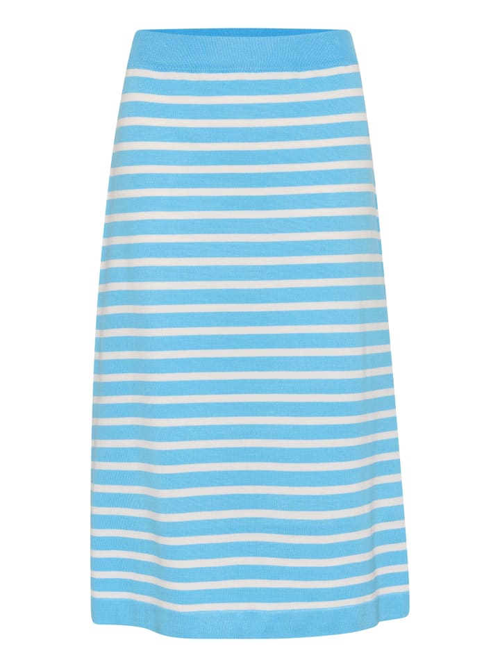 Эта женская юбка миди в полоску удобного прямого кроя с эластичным поясом. Длина миди обеспечивает универсальность на каждый день. Ребристые детали на поясе и подоле дополняют образ.