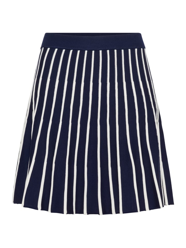 Эта женская трикотажная мини-юбка имеет классический А-образный силуэт с вертикальными полосками, которые визуально удлиняют фигуру. Эластичный пояс обеспечивает удобную посадку и разнообразные возможности для создания образа.