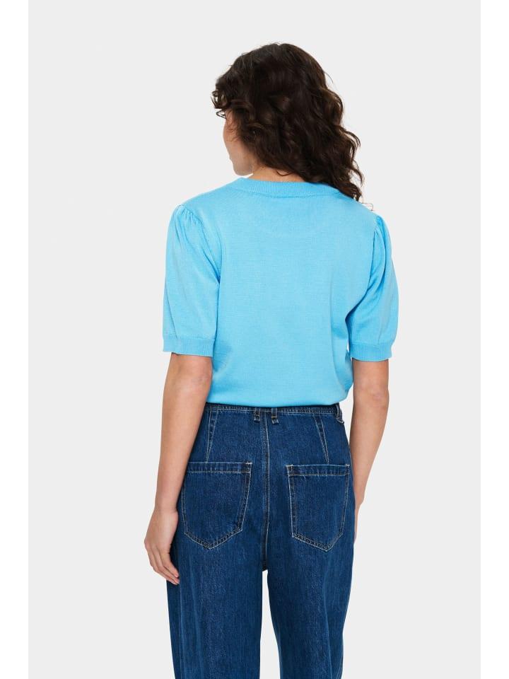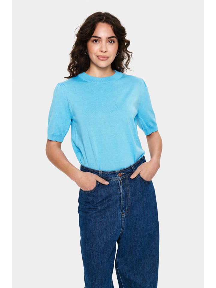 Трикотажный свитер с короткими рукавами, стандартным кроем, круглым вырезом и ребристыми манжетами. Универсальный, удобный и идеально подходит для повседневной носки и офиса.