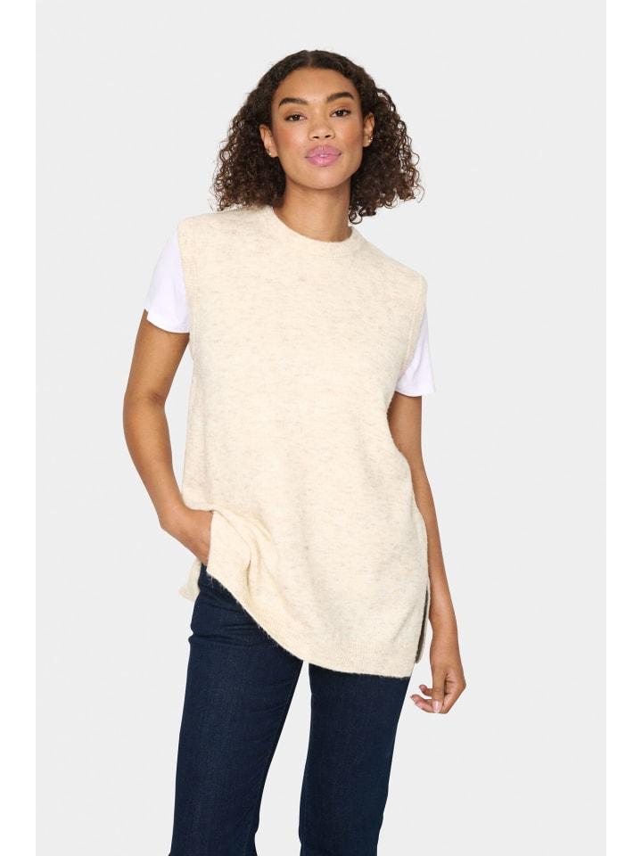 Этот женский трикотажный жилет впечатляет свободным кроем, круглым вырезом и безрукавкой. Мягкая структура и удлиненная длина обеспечивают комфорт и разнообразие вариантов для создания образа.
