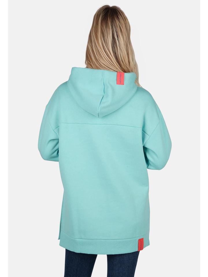 Найдите идеальную толстовку на любой случай! Проводите ли вы расслабляющие выходные дома или наслаждаетесь стильными прогулками по городу, наша свободная толстовка с капюшоном уникальным образом сочетает в себе комфорт и стиль. Прямой крой со спущенными плечами обеспечивает свободную посадку, а декоративный шов над грудью придает худи утонченную элегантность. Общая длина 80 см для размера M и ширина груди 1/2 62 см, она идеально подходит для любой фигуры и доступна в размерах XS-3XL. Материал и качество изготовления: изготовленная из 50% хлопка и 50% полиэстера, эта толстовка не только сохраняет форму, но и невероятно мягкая и уютная на ощупь. Начес на внутренней стороне обеспечивает уютное тепло и максимальный комфорт - идеально для прохладных дней! Уникальные детали: наша толстовка впечатляет визуальным эффектом свежего аквамаринового цвета, дополненного фиксированным шнурком того же цвета, который добавляет особый акцент дизайну. Два практичных боковых разреза шириной 33 см не только обеспечивают свободу движений, но и являются стильным акцентом. Внутри вы найдете удивительные детали: скрытый принт SUNSHINE в боковых разрезах и принт с эффектом соляной кожи, который немного темнее цвета толстовки, придают изделию уникальный штрих. Кроме того, бирка с эффектом соляной кожи на капюшоне и поясе гарантирует высокое качество отделки.