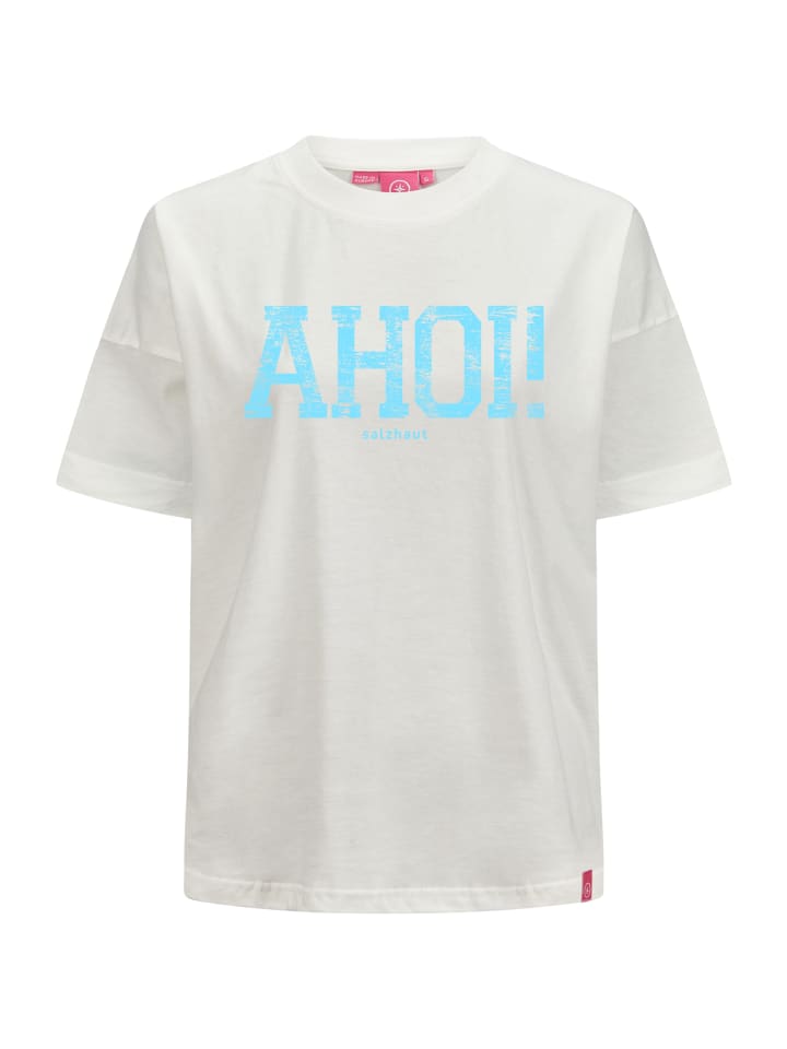 AHOY! Женская рубашка с коротким рукавом LEEV от Salzhaut - идеальный стильный аксессуар для тех, кому нужно хорошее настроение в повседневной жизни! Модный принт AHOY в холодных тонах делает рубашку настоящей приманкой для глаз - настоящим воплощением позитивной энергии. Рубашка с коротким рукавом и спущенными плечами очень удобна благодаря своему классическому крою, а длина 65 см в размере M добавляет ей необходимую долю стиля.