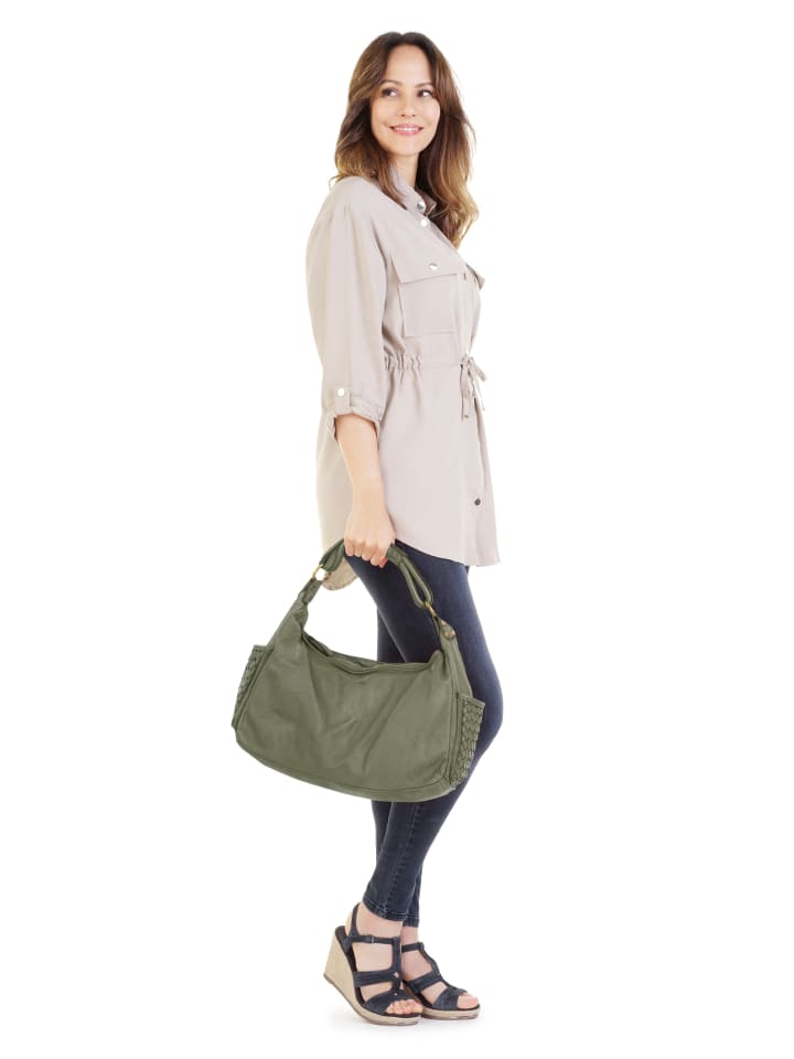С итальянским теплом Samantha Look представляет женскую сумку в модном винтажном стиле. Благодаря бережной стирке кожа становится особенно мягкой и сохраняет свой винтажный вид. Вместительное основное отделение подходит для документов формата А4, а также бутылки с водой, небольших покупок и косметички. Смартфон и ключи можно хранить в накладных карманах - все удобно и под рукой. Два боковых кармана с плетеным эффектом идеально подойдут для салфеток и билетов. Ваша винтажная сумка станет идеальным спутником на каждый день и в любой ситуации. Выберите один из двух вариантов ношения. Либо как классическая сумка через плечо - съемный плечевой ремень делает это возможным.