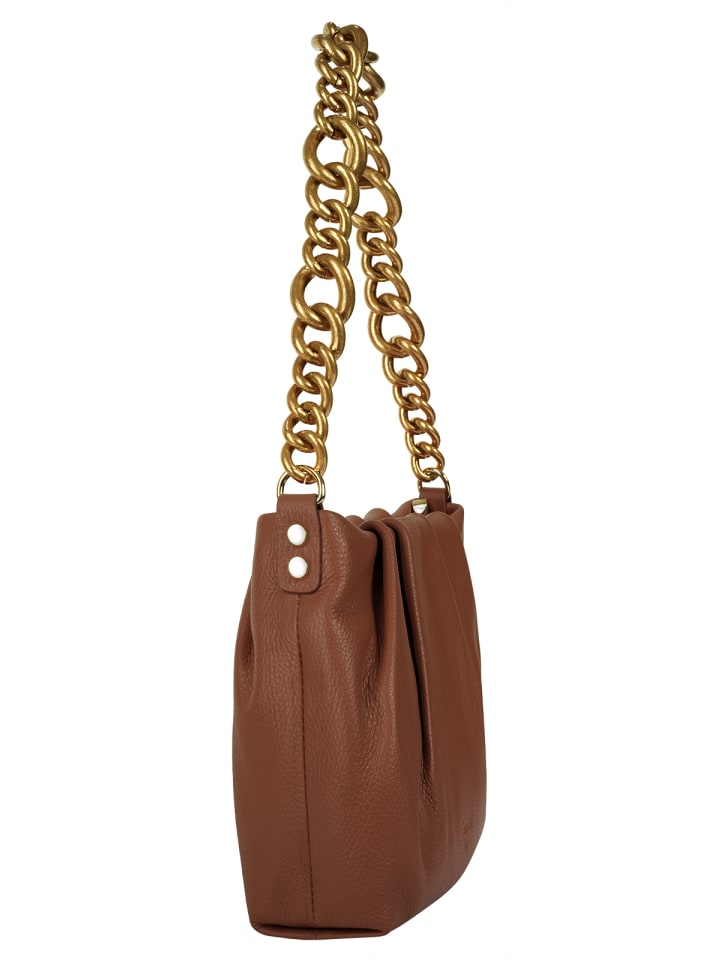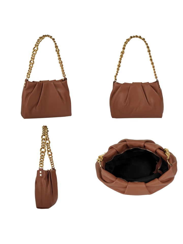 Кожаная сумка через плечо от Samantha Look - это нечто особенное благодаря сборке! В основном отделении достаточно места для кошелька, смартфона и ключей, а также для небольших косметических средств, таких как зеркальце и пудра. Это делает вашу новую сумочку идеальным вариантом для очередного торжества, изысканного ужина или посиделки с друзьями после работы. Изящная цепочка из состаренного золота и съемный плечевой ремень позволяют носить ее двумя способами: классически через плечо или удобно, как сумку через плечо.