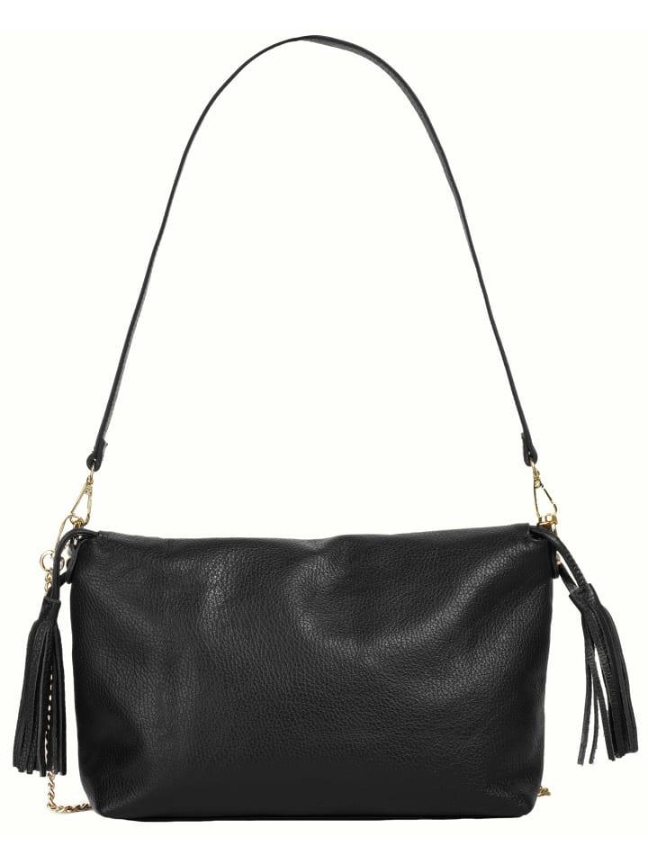 Простая и элегантная: кожаная сумка через плечо от Samantha Look. Несколько изящных металлических элементов придают этой итальянской сумке изысканность: игривые кисточки по бокам визуально облегчают дизайн. Внутри - основное отделение с несколькими отделениями для хранения. Будь то воскресный завтрак или прогулка по городу во время вашего следующего отпуска, эта сумка через плечо всегда будет хорошим выбором.