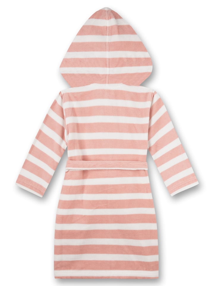 Приятный мягкий халат для девочек от Sanetta в нежную розовую полоску.