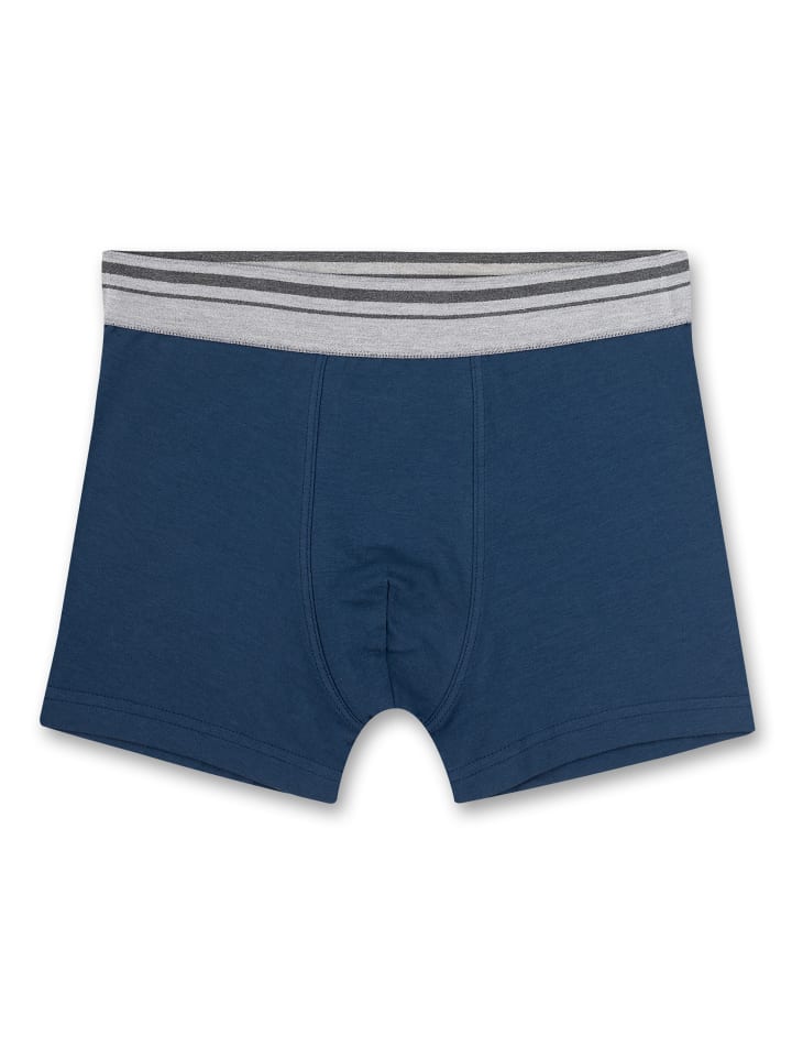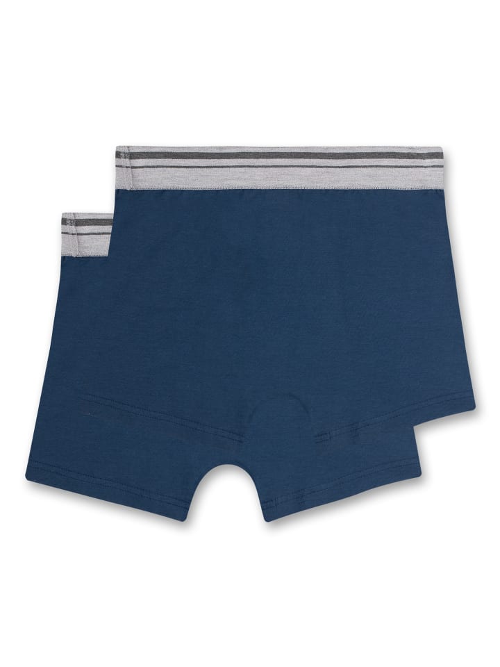 Комплект из двух базовых шорт для мальчиков синего цвета с контрастным серым тканым поясом от Sanetta.