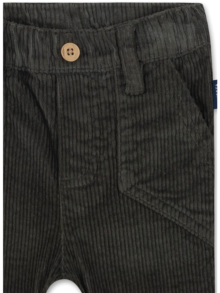 Прочные вельветовые брюки для мальчиков, в которых можно резвиться и играть, от Sanetta Kidswear темно-зеленого цвета.