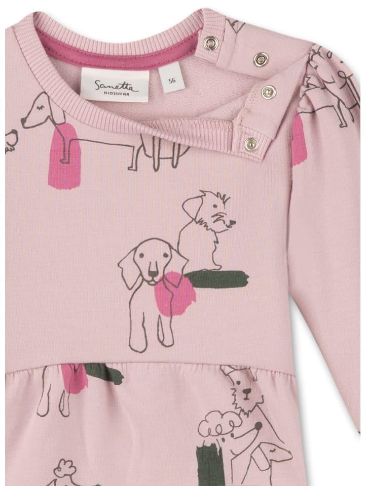 Розовое платье для девочек с различными мотивами собак в виде симпатичного сплошного принта от Sanetta Kidswear.