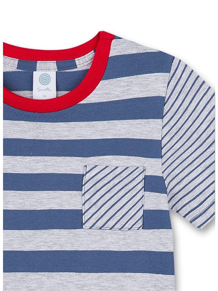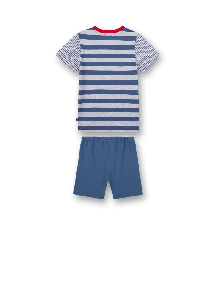 Короткие пижамы для мальчиков из линейки Sanetta NEW BASIC с интересным синим полосатым рисунком.