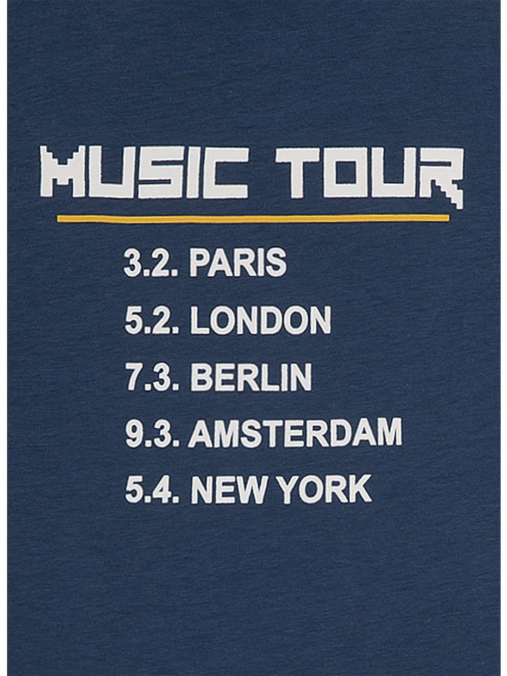 Синий топ с длинными рукавами от Sanetta Kidswear свободного кроя с различными надписями спереди и сзади.