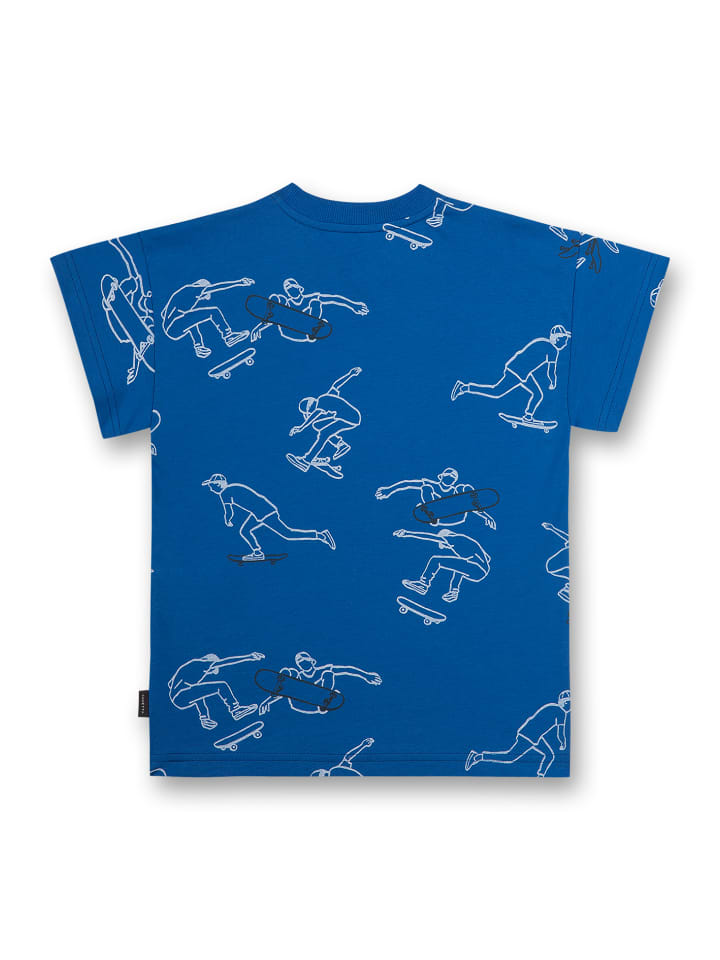 Футболка для мальчика со стильным рисунком скейтбордиста по всей поверхности от Sanetta Kidwear.