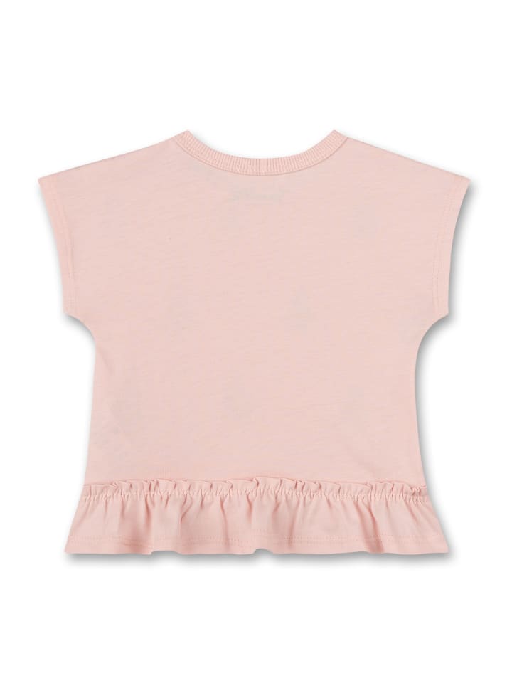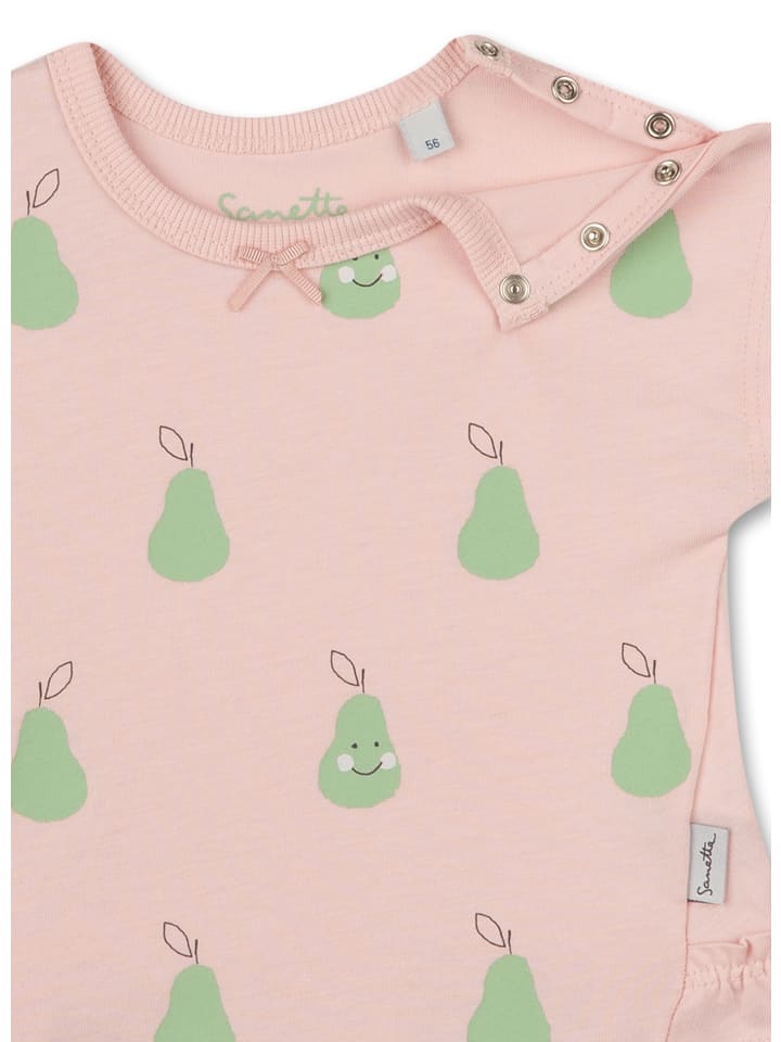 Розовая футболка для девочек от Sanetta с принтом в виде зеленой груши по всей поверхности, модный крой от Sanetta Kidswear.