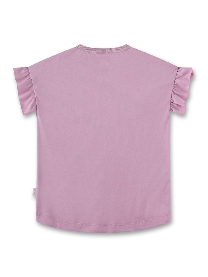 Очаровательная футболка для девочек от Sanetta Pure приглушенно-розового цвета с летними мотивами спереди.