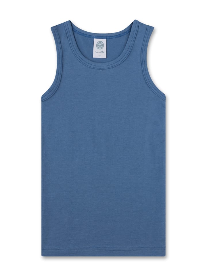 Майки для мальчиков от Sanetta в удобной двойной упаковке с классным принтом динозавров по всей поверхности и базовым синим цветом.