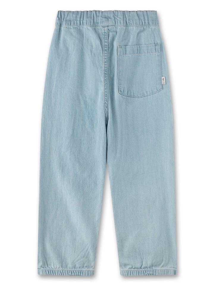 Модные джинсы для девочек светло-голубого цвета с нашитым карманом сзади слева от Sanetta Pure.