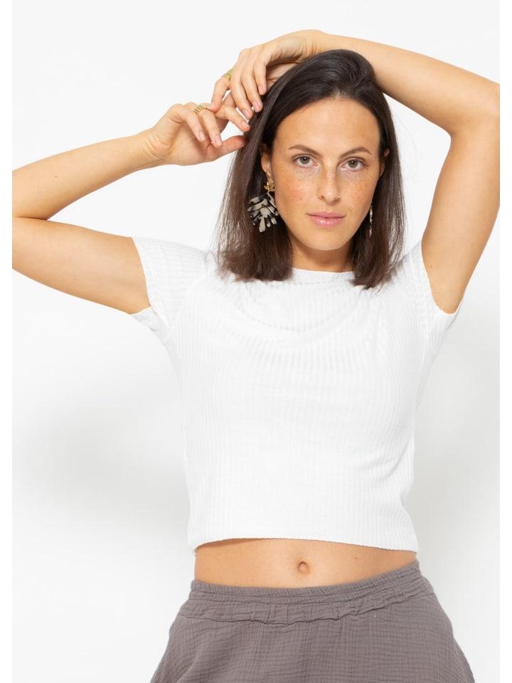 Рубашка с короткими рукавами из мягкого вискозного трикотажа в рубчик, который приятно тянется и выгодно подчеркивает фигуру. Классический круглый вырез горловины придает модели вневременной стиль, а мелкий рубчик создает изящную, стильную текстуру. Идеально подходит для универсальных сочетаний - как для повседневного ношения с джинсами, так и для элегантного ношения под пиджаком.