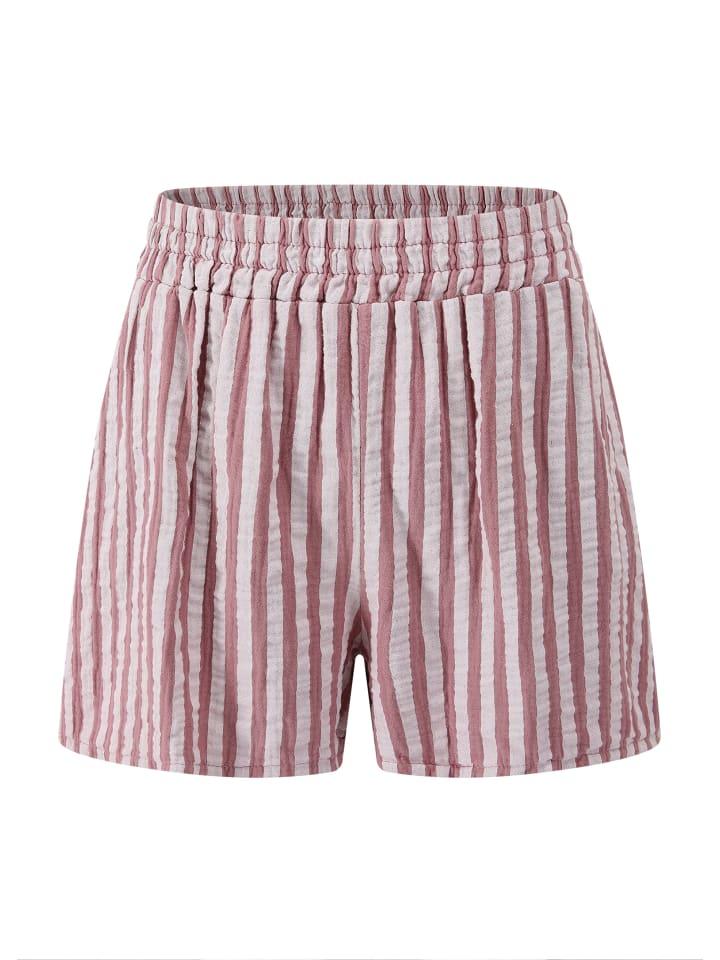 Легкие, воздушные и стильные: эти повседневные шорты из мягкого хлопкового муслина привнесут в ваш гардероб нотку летней непринужденности. Тонкий полосатый рисунок в нежных пастельных тонах создает свежий образ с очаровательным ретро-налетом. Благодаря эластичному поясу с высокой талией на завязке и свободному силуэту шорты обеспечивают оптимальный комфорт и свободу движений. Боковые карманы добавляют практичные акценты, а текстурированная поверхность ткани обеспечивает приятное ощущение. В сочетании с подходящей блузкой в том же дизайне вы создадите гармоничный комплект из двух предметов - идеальный для теплых дней и стильных непринужденных образов.
