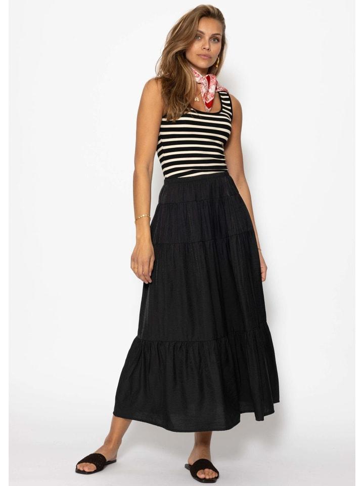 - ДИЗАЙН: Струящаяся юбка макси с широкими воланами, которые создают элегантный эффект благодаря своему легкому блеску и придают образу женственную динамику