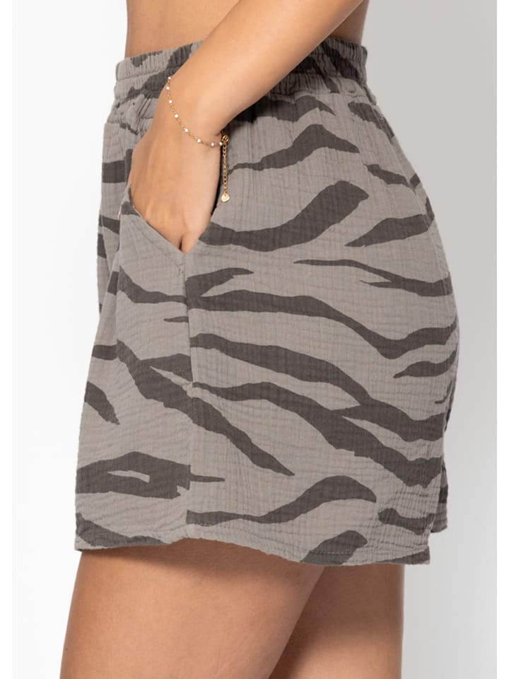 Эти шорты для отдыха из мягкого хлопкового муслина по-настоящему привлекают внимание благодаря модному леопардовому принту в ярких розовых и оранжевых тонах. Свободный, удобный крой и современная высокая талия обеспечивают полную свободу движений. Практичные детали, такие как удобные боковые карманы и эластичный пояс, обеспечивают дополнительный комфорт и удобство. Легкая и воздушная ткань делает эти шорты идеальными для повседневных образов, пляжных прогулок или в качестве яркого летнего аксессуара. Для создания особенно гармоничного и однородного образа можно также подобрать подходящую блузку в том же дизайне, но ее также можно прекрасно сочетать с однотонными топами.