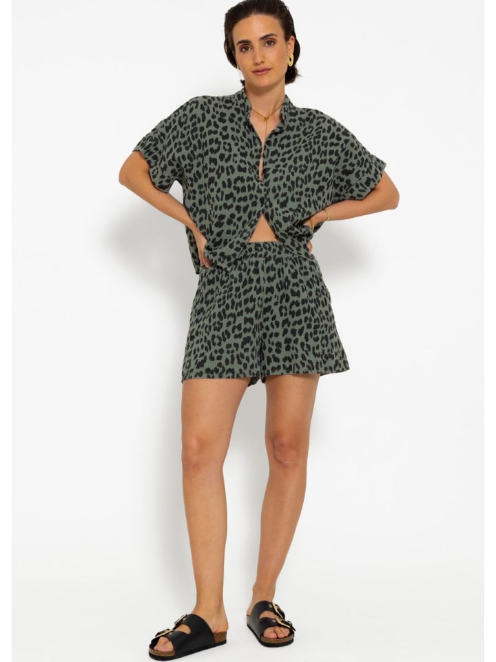 Эти шорты для отдыха из мягкого хлопкового муслина по-настоящему привлекают внимание благодаря модному леопардовому принту в ярких розовых и оранжевых тонах. Свободный, удобный крой и современная высокая талия обеспечивают полную свободу движений. Практичные детали, такие как удобные боковые карманы и эластичный пояс, обеспечивают дополнительный комфорт и удобство. Легкая и воздушная ткань делает эти шорты идеальными для повседневных образов, пляжных прогулок или в качестве яркого летнего аксессуара. Для создания особенно гармоничного и однородного образа можно также подобрать подходящую блузку в том же дизайне, но ее также можно прекрасно сочетать с однотонными топами.