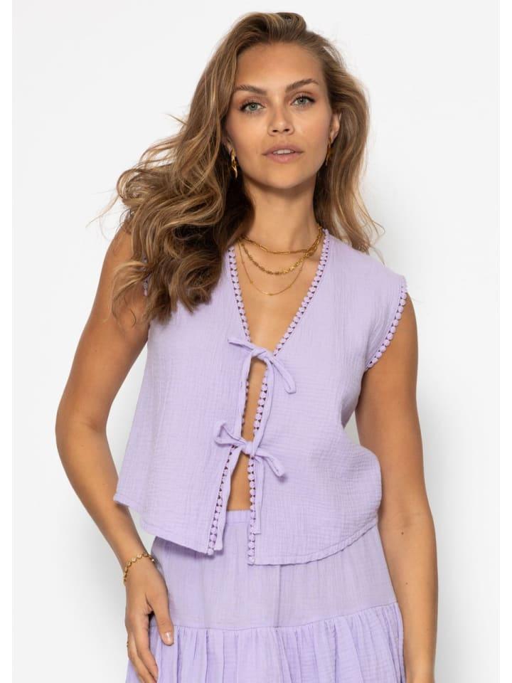 Повседневный, легкий и очаровательный - этот топ без рукавов из муслина идеально подходит для солнечных дней и непринужденных нарядов. Мягкая фактура муслина приятна к коже и в сочетании со свободным кроем привносит в ваш образ нужную долю легкости. Две изящные завязки на глубоком V-образном вырезе добавляют игривые акценты, а изящная вязаная крючком отделка по краям добавляет милые детали, которые придают дизайну особый шарм. Независимо от того, сочетаете ли вы его с узорчатыми шортами, легкой юбкой или классическими джинсами, этот топ легко источает летние нотки бохо и мгновенно становится изюминкой вашего гардероба.