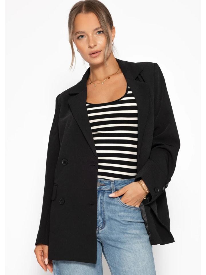 Этот свободный блейзер сочетает в себе классический дизайн и современную непринужденность и станет незаменимым аксессуаром для стильных образов. Свободный, слегка свободный крой и двойная планка с пуговицами создают эффектный силуэт, излучающий комфорт и уверенность. Текстурированный материал обеспечивает высокое качество, а классические детали, такие как лацканы, изящные подплечники и карманы с клапанами, придают блейзеру элегантность. Высококачественные пуговицы спереди и на рукавах добавляют акценты и подчеркивают его изысканный характер. Благодаря своей универсальности, пиджак можно носить повседневно с джинсами или элегантно с брюками или платьями - идеально для офиса, ужина или отдыха, а также он станет модным акцентом в любом наряде.