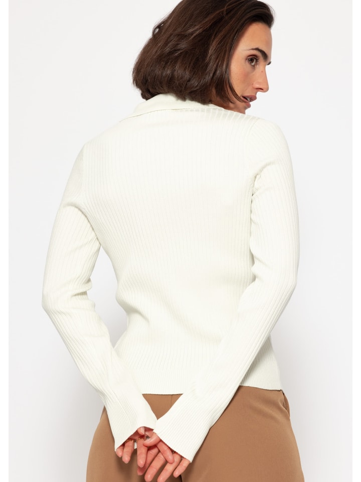 Этот трикотажный топ с длинными рукавами из ребристого материала мягко облегает тело и искусно подчеркивает силуэт. Изысканная кружевная деталь спереди придает дизайну женственный и игривый штрих. Классический воротник добавляет стильный вид, а ребристые манжеты и закругленный подол завершают гармоничный общий вид. Универсальный в сочетании - будь то повседневный с джинсами или элегантный с юбкой или брюками - этот топ - настоящий маст-хэв для стильных образов.