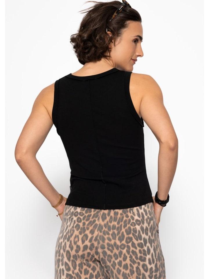 Эта майка - не просто базовая вещь, а настоящий стильный акцент. Благодаря облегающему крою и изысканным внешним швам она расставляет модные акценты. Классический круглый вырез горловины и широкие бретели без рукавов обеспечивают удобную посадку и максимальную свободу движений. Изысканная деталь: эффектный вертикальный шов на спинке, придающий топу современный вид. Слегка расклешенный закругленный подол выгодно подчеркивает фигуру и гармонично дополняет образ. Независимо от того, носите ли вы его повседневно с шортами или элегантно с юбкой и блейзером, этот топ станет универсальным компаньоном на все случаи жизни.