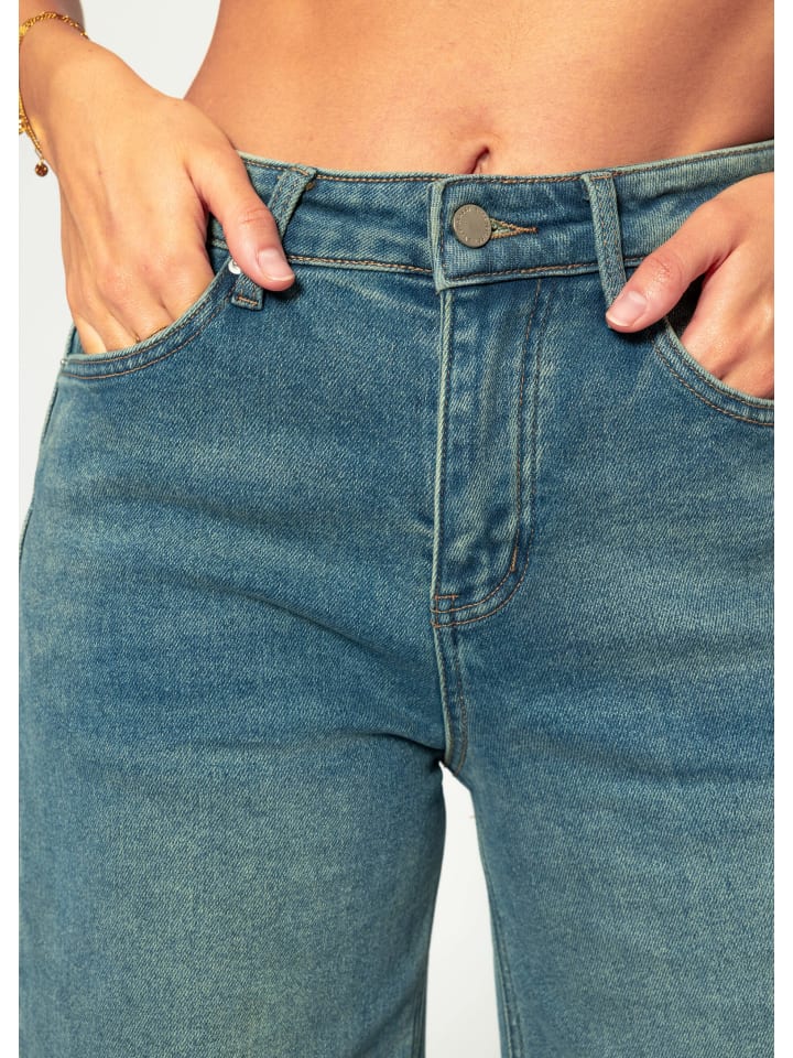 Термоджинсы широкого кроя синего цвета. Эти модные термоджинсы сочетают в себе комфорт и современный дизайн. Благодаря подкладке они согревают и идеально подходят для прохладных дней. Свободный широкий крой обеспечивает модную, но удобную посадку и придает любому образу стильный силуэт. Эти джинсы с практичной застежкой на пуговицу и молнию, а также шлевками для ремня отличаются классическим кроем с пятью карманами. Высокая талия подчеркивает линию талии и визуально удлиняет ноги. Изготовленные из высококачественной эластичной хлопковой смеси, эти джинсы мягкие на ощупь и идеально сидят, обеспечивая комфорт в течение всего дня.