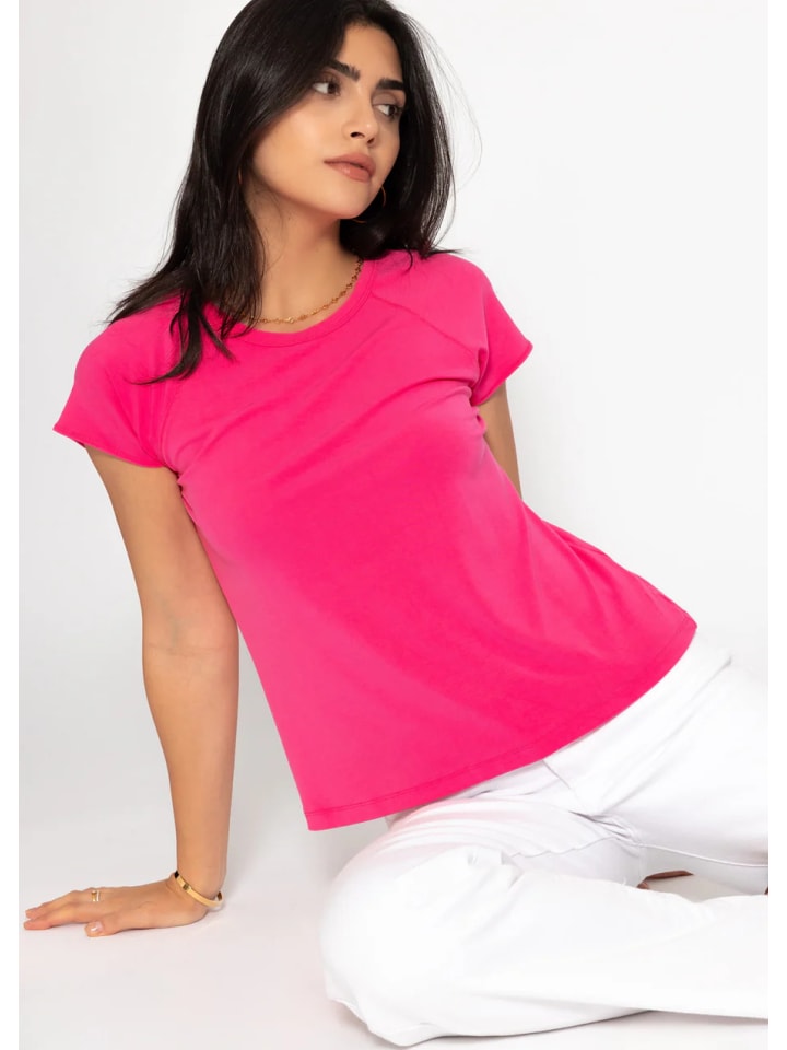 Эта футболка - настоящая базовая вещь с современным оттенком, которая обязательно должна быть в гардеробе. Простой фасон смягчается спортивным швом реглан, который не только добавляет особый шарм, но и подчеркивает область плеч и обеспечивает удобную посадку. Изготовленная из мягкой высококачественной вискозы с эластаном, она приятна на ощупь, дышащая и обеспечивает максимальный комфорт - идеально подходит для повседневной носки. Классический круглый вырез и короткие рукава дополняют минималистичный дизайн, а аккуратные швы и едва заметные нижние края подчеркивают лаконичный вид. Универсальная в сочетании с джинсами, юбками и шортами, а также идеальная в качестве многослойного элемента под пиджаки или куртки - эта футболка станет незаменимым повседневным аксессуаром.
