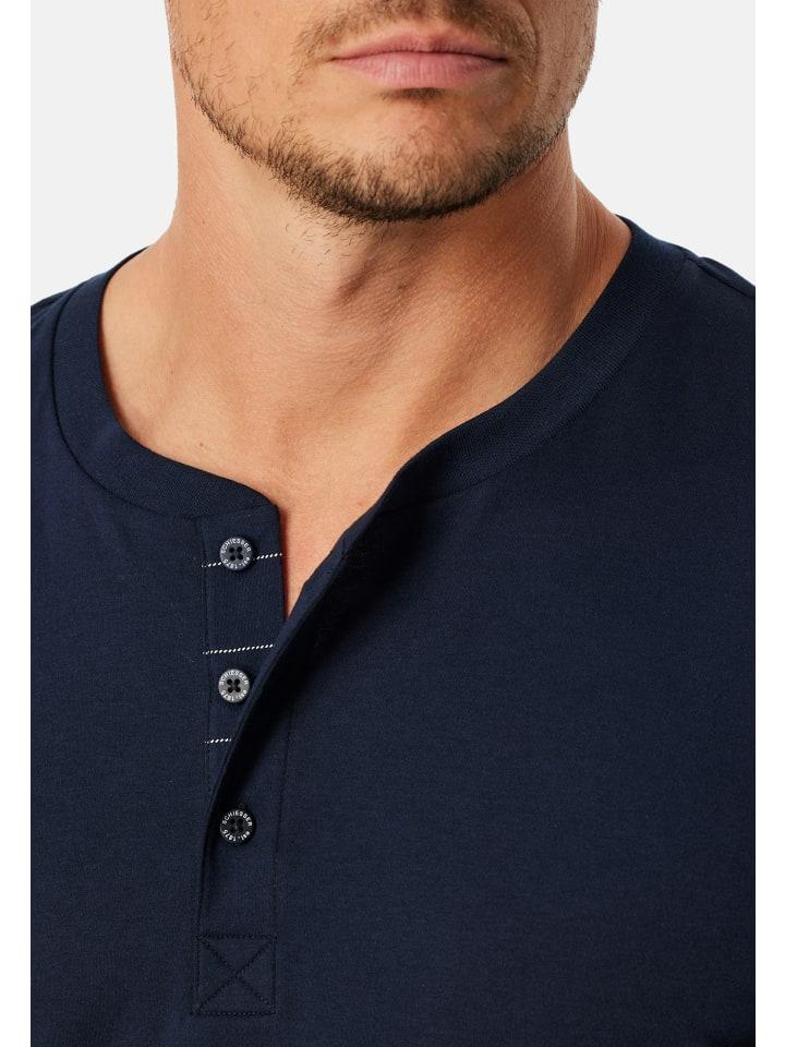 Эта пижама, мягкая и стильная, выполнена из высококачественного тонкого хлопка интерлок. Однотонная рубашка с длинными рукавами и функциональной планкой на пуговицах сочетается с узорчатыми брюками с удобным поясом и манжетами. Изящные детали и современный дизайн делают эту пижаму идеальным дополнением для спокойного вечера.