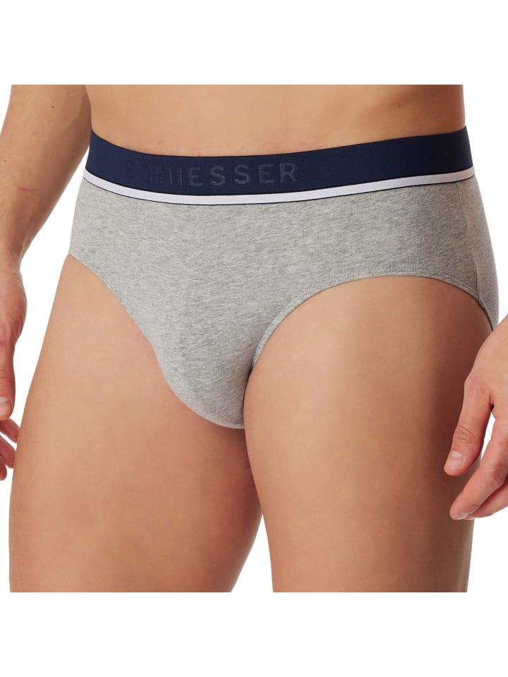 Трое мужских трусов Rio от SCHIESSER. Эластичный трикотаж из органического хлопка с добавлением эластичных волокон. Удобный тканый эластичный пояс с логотипом.