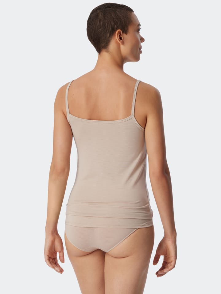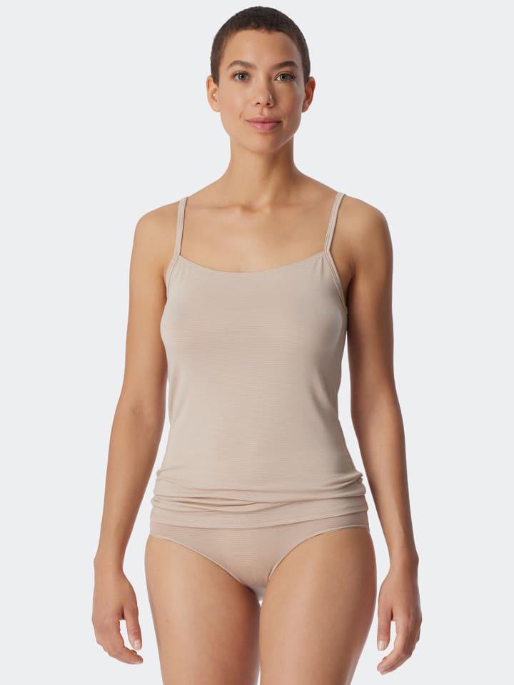 Любимые женские топы-спагетти сочетают идеальную посадку и удивительно легкий материал. Секрет комфорта этих двух топов - эластичный, сохраняющий форму трикотаж с высоким содержанием модала. Они не только невероятно мягкие на ощупь, но и терморегулирующие. Благодаря узким трикотажным полоскам эти майки станут очаровательным базовым дуэтом - и, конечно же, высочайшего качества SCHIESSER!