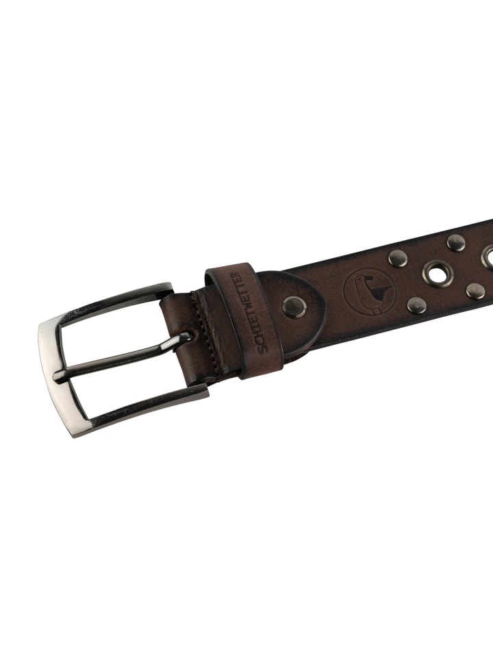 Стильные заклепки и декоративные гвоздики, которые также служат функциональными отверстиями для пряжки, придают ремню уникальный штрих в стиле рок-шик. Элегантная металлическая пряжка и классическая форма делают Nena идеальным дополнением - будь то джинсы, кожаная куртка или платье. Особая изюминка: тисненая чайка, фирменный знак Schietwetter, олицетворяет скандинавскую аутентичность и свободу.