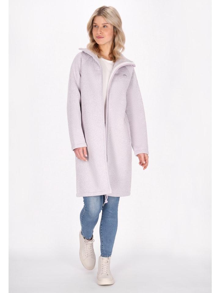 - Флисовая куртка прямого кроя длиной до колена с воротником-стойкой и длинными рукавами
