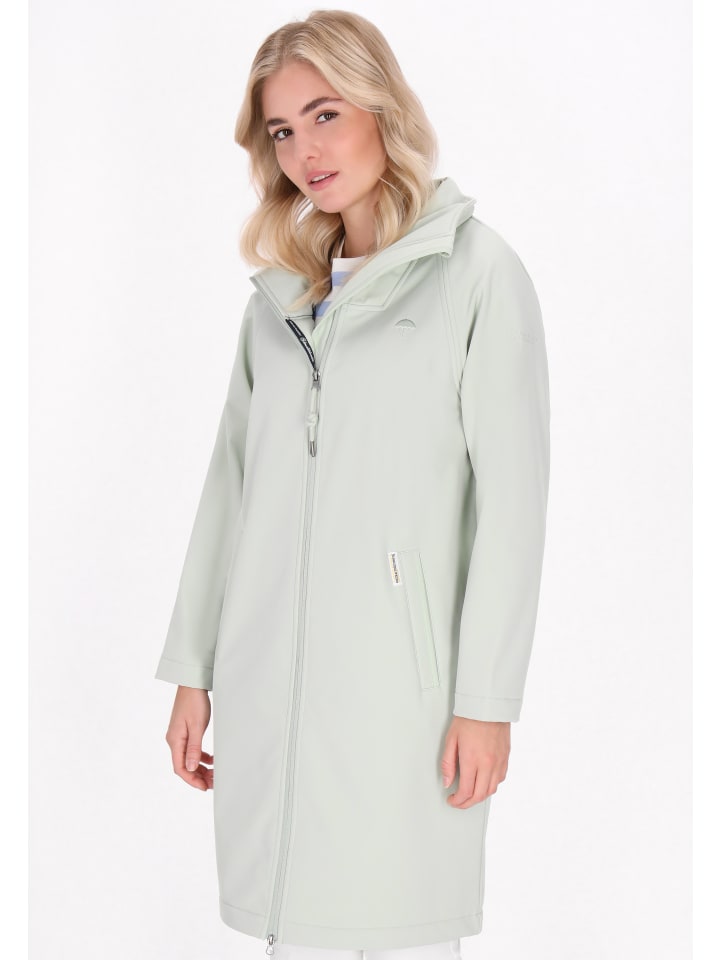 - Софтшелл стандартного кроя длиной до колена с воротником-стойкой и длинными рукавами