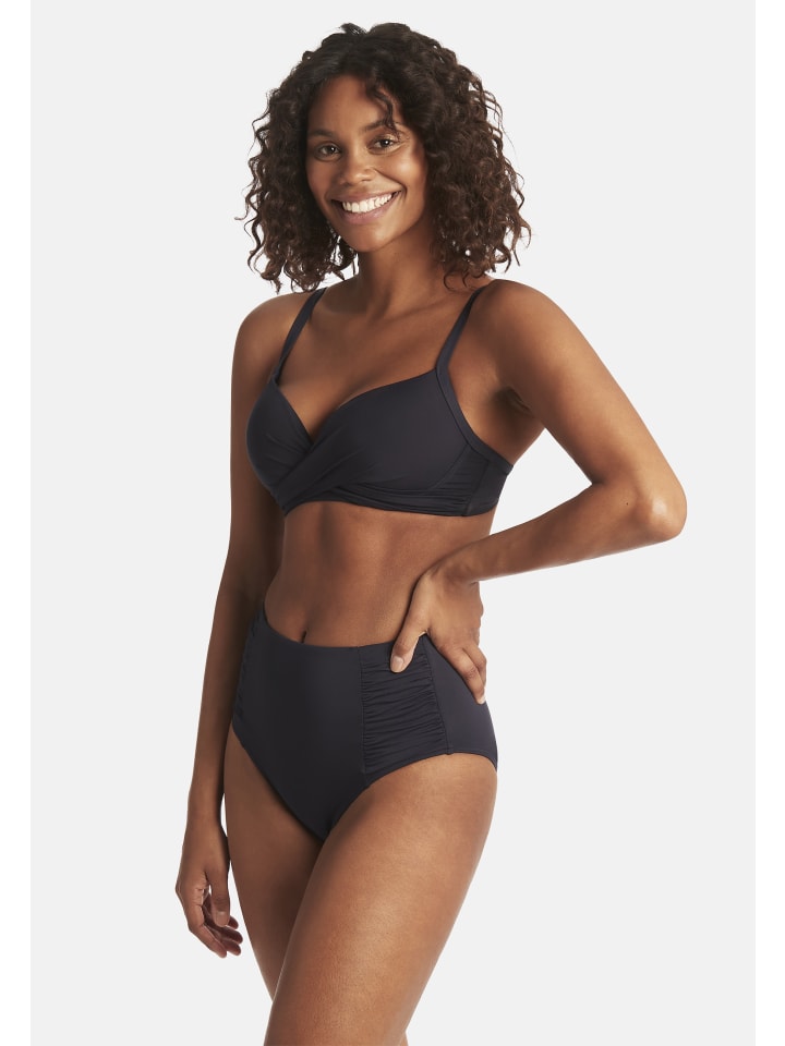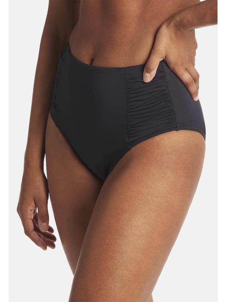Плавки бикини с высокой талией, сборками по бокам и сетчатой поддержкой по всему телу. Материал: 85% полиэстер, 15% эластан.