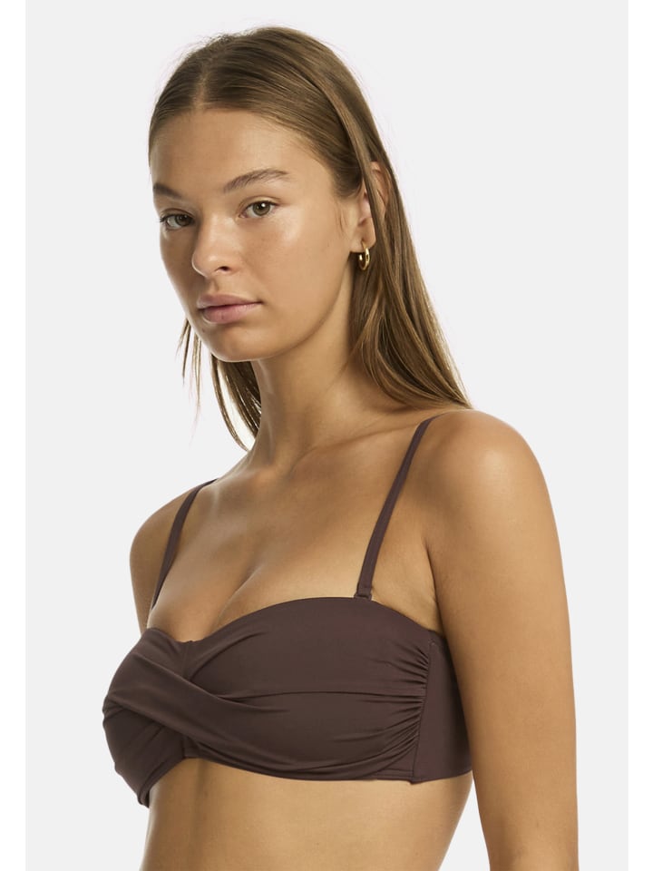 Верх бикини-бандо с закрученными чашечками и силиконовой резинкой обеспечивает оптимальную поддержку. Застежка-клипса позволяет легко и удобно надевать и снимать его. Боковые косточки обеспечивают дополнительную поддержку и придают форму. Сетчатая подкладка по всей поверхности обеспечивает поддержку и сглаживающий эффект. Регулируемые бретели позволяют регулировать посадку. В целом, этот верх бикини - стильный и функциональный выбор для пляжа или бассейна.
