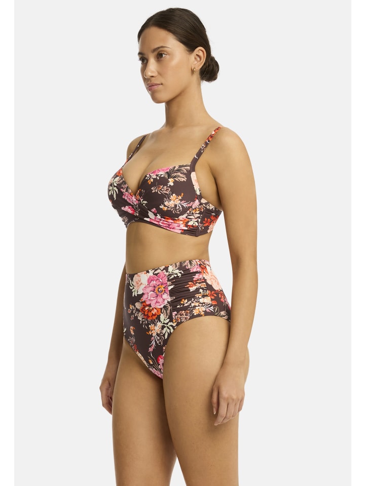 Плавки бикини с высокой талией, сборками по бокам, поддерживающая сетка Powermesh по всему телу