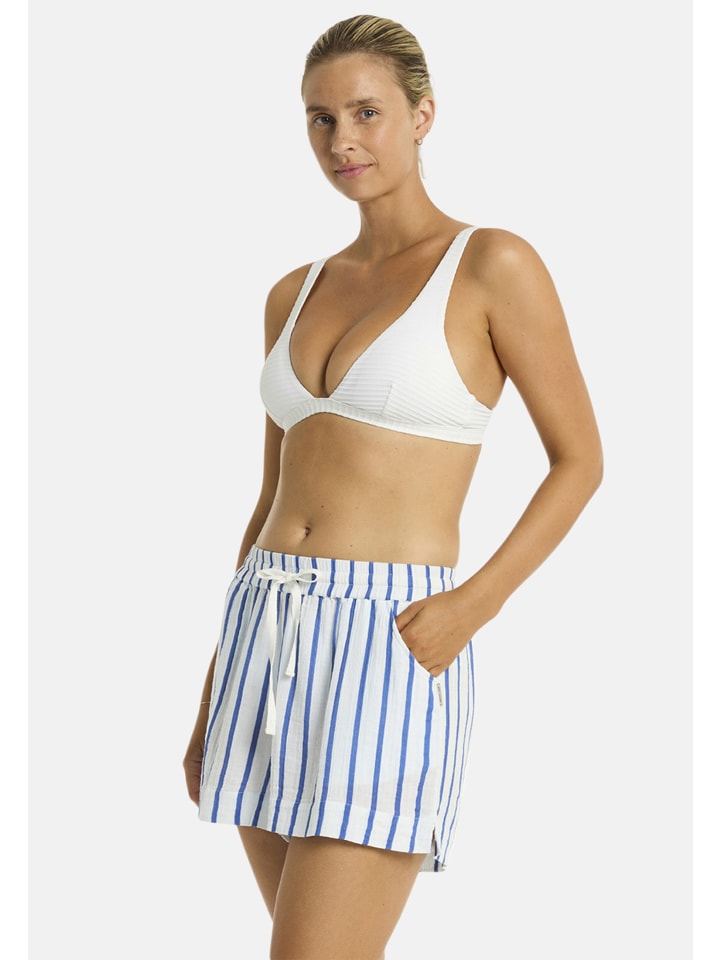 Пляжные шорты изготовлены из двухслойной хлопковой марли, что делает их легкими и воздушными. Они идеально подходят для пляжного отдыха или просто отдыха. Боковые карманы функциональны и стильны. Эластичный пояс с застежкой-молнией обеспечивает удобную посадку и позволяет регулировать ширину шорт. Благодаря высокой талии шорты сидят высоко на талии, создавая привлекательный силуэт, и отлично сочетаются с различными нарядами. Эти пляжные шорты сочетают в себе комфорт, стиль и функциональность.