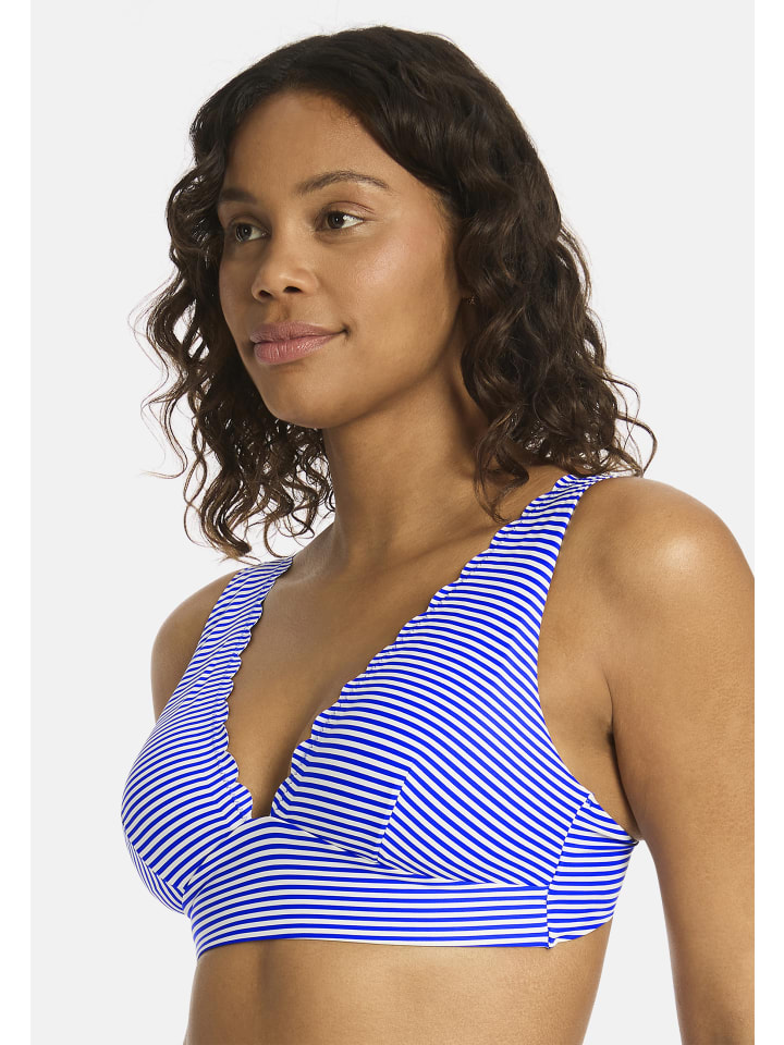 Ощутите стильную элегантность и безупречный комфорт с удлиненным топом Sea Level, специально разработанным для модниц, которые хотят производить незабываемое впечатление как в воде, так и на пляже. Этот эффектный топ с очаровательным фестончатым краем добавляет очаровательный штрих и подчеркивает вашу фигуру. Съемные чашечки позволяют регулировать размер и изящно поддерживают вашу естественную форму. Регулируемые и трансформируемые бретели позволяют создавать любой образ - классический, перекрещивающийся или с халтером - удлиненный топ гарантирует надежную посадку и оптимальную поддержку. Практичная застежка-бабочка на спине не только обеспечивает удобство использования, но и добавляет элегантности. Стратегически расположенные боковые косточки обеспечивают дополнительную стабилизацию и поддержку, позволяя вам полностью сосредоточиться на вашем дне у воды. Высококачественная сетчатая ткань облегает тело, обеспечивая отличную посадку и при этом дышащую. Этот удлиненный топ в привлекательном кобальтово-белом цвете с изящными полосками не только стильный, но и выводит любой образ с купальником на новый уровень. Этот привлекательный и функциональный удлиненный топ - обязательная вещь в любой коллекции купальников. Он придаст вам уверенности и стиля, пока вы наслаждаетесь солнцем и покоряете волны!