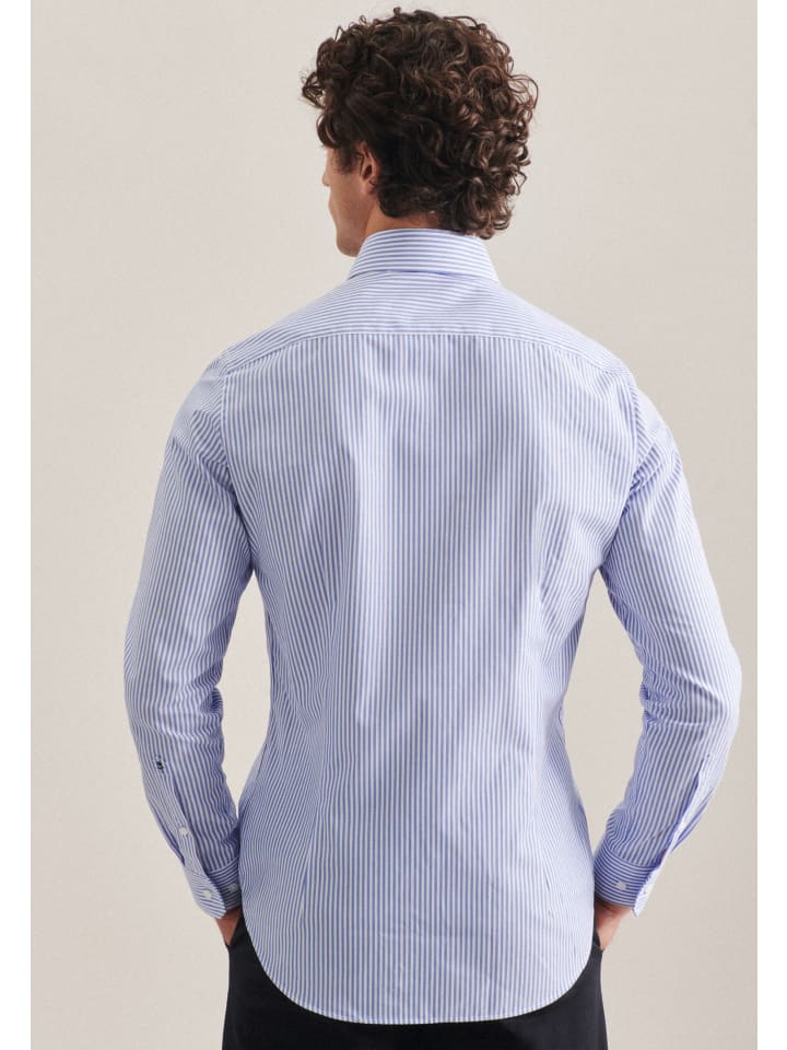 Стильная деловая рубашка с длинными рукавами от Seidenstricker гарантированно произведет впечатление в любой ситуации. Изящные полоски придают модели изысканный вид и позволяют комбинировать ее с различными нарядами. Дополнительные детали, такие как воротник-стойка Кент и регулируемые манжеты, идеально дополняют образ этой модели от Seidenstricker. Материал из хлопка, не требующий глажки, и легкий пошив также гарантируют идеальное ощущение кожи.