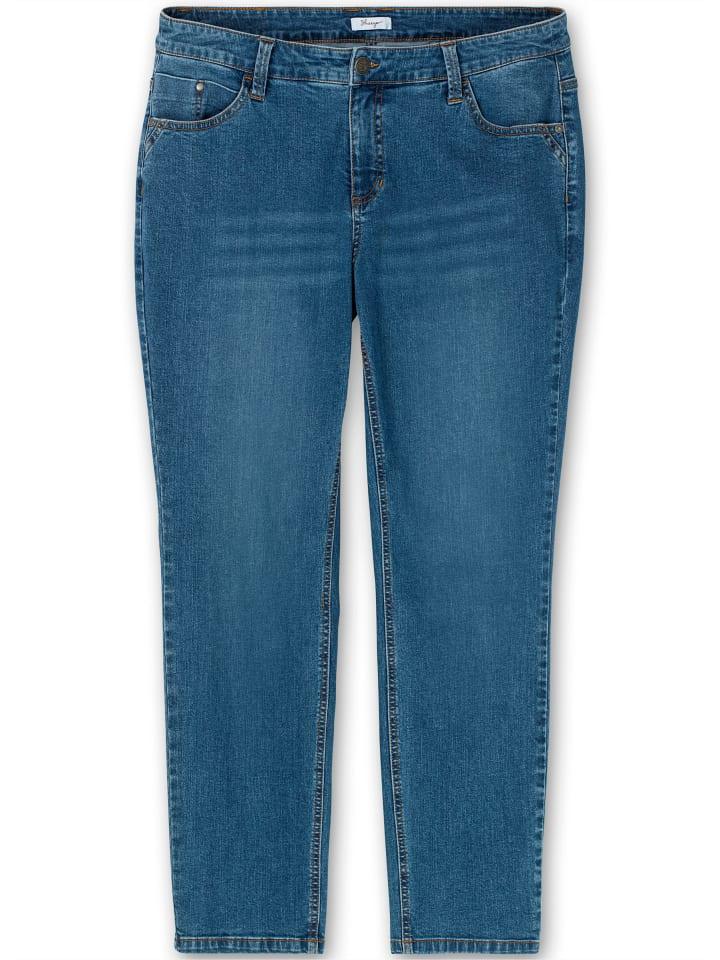 Зауженные джинсы фигурного кроя VERENA. Удобная посадка идеально подходит для фигуры с узкой талией, полными ягодицами и бедрами. Стирка и контрастные швы придают джинсам повседневный вид. Фигурный пояс со шлевками для ремня и классическая форма с пятью карманами завершают образ.