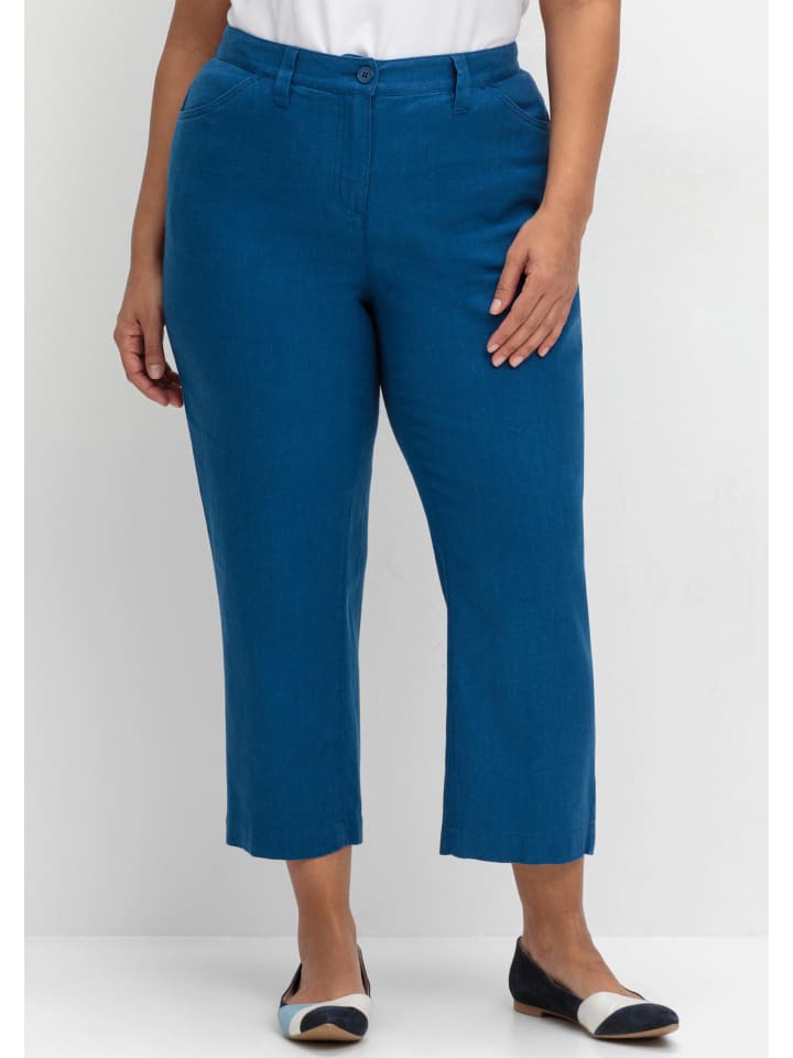 Брюки без щиколотки из смеси льна. Прямой крой и укороченная длина придают им вневременной современный вид; материал приятно ощущается на коже. Для оптимального комфорта брюки имеют частично эластичный пояс сзади, шлевки для ремня, боковые карманы и накладные карманы сзади. В сочетании с подходящим жилетом они создают летний комплект.