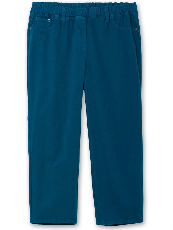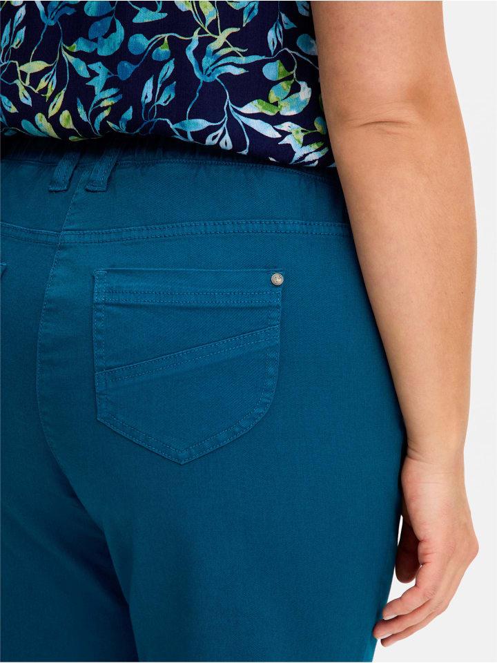 Узкие брюки из твила длиной 7/8. Широкий эластичный пояс делает брюки очень удобными, а шлевки для ремня придают им ухоженный вид. Они имеют классический пятикарманный дизайн, а карман для монет с цветным швом. Сзади также имеются накладные карманы.