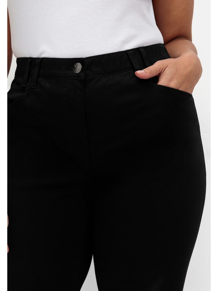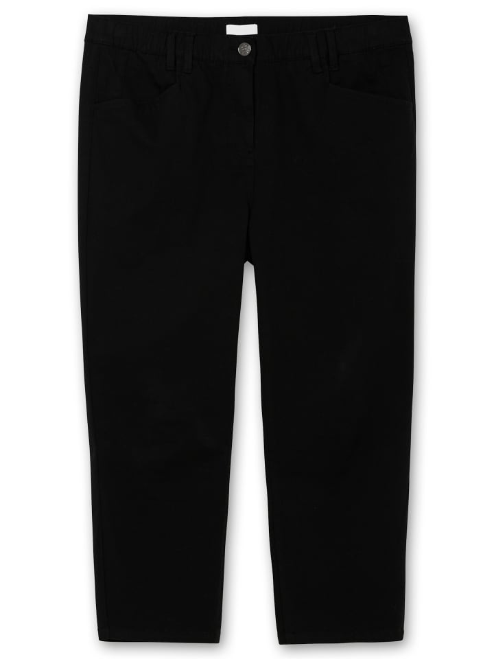 Узкие брюки длиной 7/8 дюйма из хлопкового твила. Эластичный пояс обеспечивает особенно удобную посадку. Застежка на пуговицу и молнию, а также шлевки для ремня придают нарядный и ухоженный вид. L-образные карманы не громоздкие, а накладные карманы сзади дополняют образ.