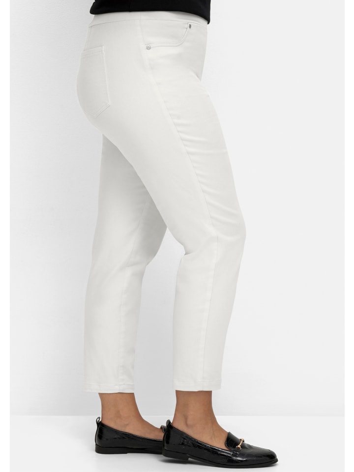 Эластичные брюки облегающего кроя. Эластичный пояс на завязках делает брюки очень удобными. Декоративные швы спереди и накладные карманы сзади подчеркивают ухоженный вид.